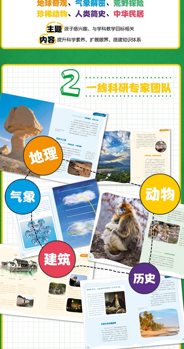 帮孩子们建立科学思维,扩展孩子知识面,提升孩子科学素养,为生物、地理、历史、气象、建筑等学科学习打好基础。