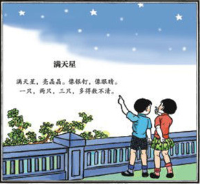 全书四册,分别围绕春、夏、秋、冬四个主题进行,每册以当季对应的三个月为篇章,每章约30首童谣,分别围绕当月适宜的活动、气候特点、学校生活等内容展开,同时穿插寓言故事,内容丰富。书中既有“淡淡的斜阳一抹,萋萋的青草满地”式美文佳句,也有“一脚踏死黑蚂蚁,双手举起红灯笼”式夸张幽默,符合儿童阅读习惯。每首童谣均配有彩色插画,线条流畅,颜色活泼,童趣十足。