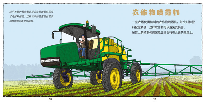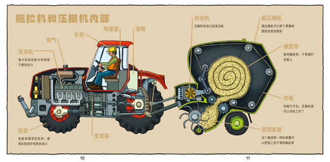 男孩们最爱的拖拉机来了!拖拉机力大无穷,可以拖着各种农业机器在田野里飞奔呢。本册共介绍了5种农业车辆:全地形车、拖拉机和圆捆打包机、联合收割机、大田喷雾机和牲口运输车。这套小百科收录了小车迷最爱的6大类交通工具:工程车、大卡车、小轿车、海陆空救援交通工具、农业车辆和各式直升飞机。作者用精美的手绘剖面透视图和简明风趣的语言全景展示了这些交通工具的用途、结构和主要部件的工作原理。提升孩子观察力、分析力和空间想象力!