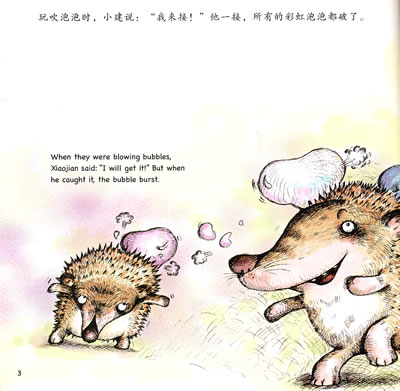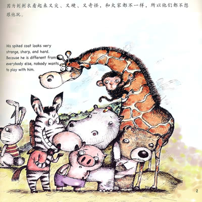 小建是一只小刺猬。他穿着一件又尖、又硬的刺刺衣。他刚搬家,来到一个新学校。因为他长得和大家都不一样,所以没有人要和他玩。他也一直交不到新朋友,没有朋友,小建越来越不开心,他开始讨厌去上学。