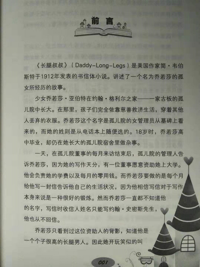 于是,茱蒂以幽默逗趣而又真情流露的笔调,开始写信给心目中的“长腿叔叔”。后来,当她爱上杰维少爷时,她又将“长腿叔叔”