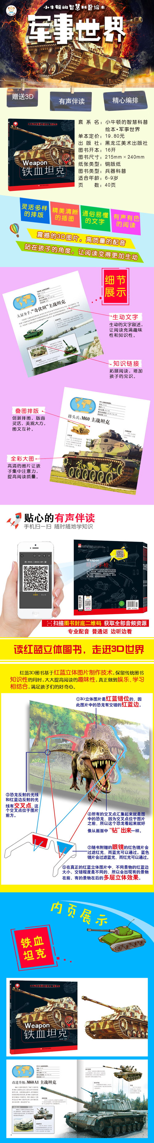 好奇和求知是人类的天性,这样的天性在孩子们的身上体现得尤为明显。孩子们的思维天马行空,他们的疑问更是数不胜数,这套《小牛顿的智慧科普绘本》能够满足孩子们的好奇心,让孩子们体验探索知识的乐趣。本套丛书涵盖了孩子们感兴趣的动物、恐龙、军事、人体等多方面知识,并采用全新的排版形式,让孩子们畅享图文阅读新体验。本套丛书赠送音频文件,扫码即可阅读,孩子们可以体验有声阅读的新潮流。