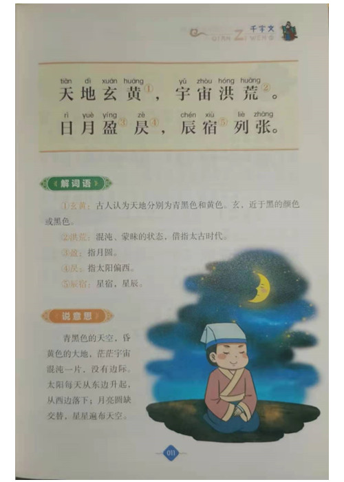 这套“影响孩子一生的国学启蒙经典”精选12部国学精华,涵盖蒙学经典、诗歌、成语、儒家著作等,均参考权威版本,并用精确注释、趣味故事、精美图片全新诠释,带领孩子充分领会和继承优秀的文化传统。千锤百炼的名言警句,朗朗上口的音韵之美,博大精深的思想内涵,让孩子们终生铭记、受益永远。本套丛书旨在加深孩子对中国古典文化的了解,对他们心智的成长和性格的形成起到积极的作用。与此同时,这套书在装帧形式上精致耐用,各个栏目的设置生动活泼,插图精美,可以充分调动孩子阅读的积极性。《千字文》涵盖天文、地理、历史、农业、矿产等各种社会文化活动的内容,具有较深的知识内涵和较大的艺术价值。为了帮助小读者更好地理解原文,本书提供了精准的注释和简洁明了的译文,还精选了许多生动有趣的小故事,并结合原文及故事,提炼出一个个小问题,启发小读者在阅读中思考。