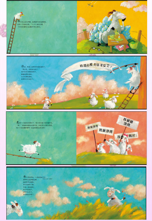 一个轻松幽默、讽刺搞笑的羊羊恋爱故事,意味深长,让孩子在笑声中学会坚持自我。插画风格和故事风格十分协调,画面甜美、明快,色彩鲜艳夺目。