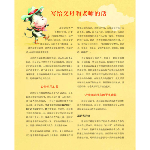 书后附有写给父母、看护人和老师的建议,教给成人如何利用本书帮助孩子们用标签的方法理解他们的感觉。