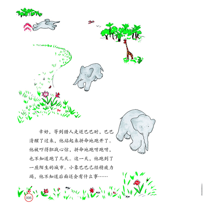 作品根据布吕诺夫的妻子西西(Cecile)为孩子编出的睡前故事改编而来,讲述了一个叫巴巴的小象离开丛林,造访人类的城市,然后将文明带回丛林与同类分享的故事。《大象巴巴》风靡世界80余载,历久弥新。《大象巴巴》系列图书被至少翻译成17种文字,系列图书目前已经有30000多种,累计销量1200万册。