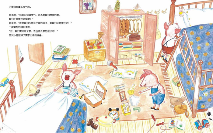 三只小猪因为争吵、不好好吃饭、把房间弄得乱七八糟,让妈妈非常生气,受到妈妈责备的小猪三兄弟决定离家出走,去当别人的孩子。它们分别去了兔子家、鳄鱼家、乌鸦家,但是都因为种种状况,都让它们觉得不适合生活在那个家里。三只小猪后来甚至还自己盖了房子,但是它们还是觉得无聊、失落,听到妈妈喊自己,它们迅速跑回自己家,果然还是自己的家是最棒的。