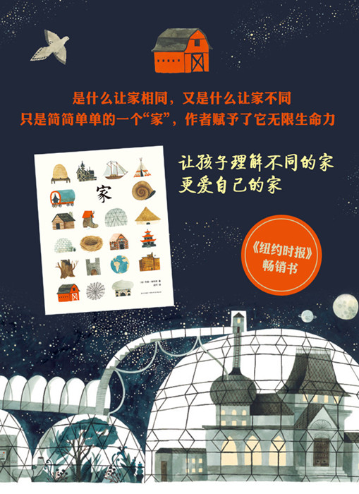 儿童图画书读物。乡间的房子,城市里的公寓,洞穴、宫殿、船,甚至是鞋子……它们都可以是家。那么,是谁住在这样的家里?铁匠、商人、艺术家、月球人……他们的家又是什么样子?你呢,你的家在哪儿?又是什么样的?只是简简单单的一个家字,作者赋予了它无限的生命力。在美妙的蓝灰、褐和砖红色的调色板下,作者卡森别具一格地描绘了形态各异的”家”,从最熟悉的乡间小屋到亚特兰蒂斯的水下世界再到遥远的外太空,让孩子理解不同的家,更爱自己的家。