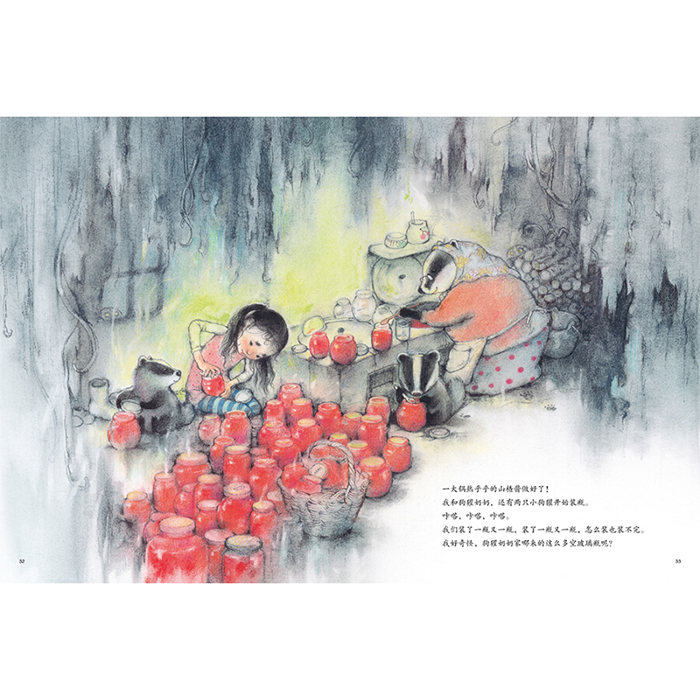 村里面,家家户户都种满了山楂树,每年秋天山楂成熟时,我都会和妈妈一起来帮奶奶做山楂酱。山楂酱又酸又甜真好吃,可奶奶却说,用山楂树王的果子做的山楂酱才好吃呢,但人找不到山楂树王,只有狗獾才能找到。