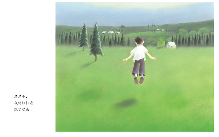 《飞向云端(精)》是有名绘本作家黑井健根据自己童年时的经历创作的绘本,一个关于飞上天空的奇异想象的故事:“我”一直相信自己能飞起来,想飞到云的那边去,看看太阳是不是藏在那里。有,“我”用手掌轻轻扇动,竟然真的缓缓向天空飞去。脚下的房屋越来越小,视野越来越开阔,“我”看到了从来没有看到过的风景。“我”随着风越飞越高,飞到了云层之上,看到云上太阳耀眼的光芒。可是,在那之后,“我”好几次想试着飞,却不知怎的再也飞不起来了。