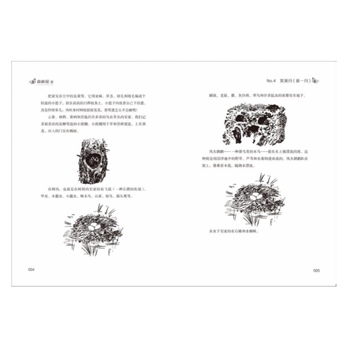 作者维·比安基以独特的视觉和表现手法,采用报刊形式,以轻快的笔调,按春、夏、秋、冬四季12个月的顺序,分别报道森林里中的新闻。天上飞的、地上爬的、土里钻的、水里游的……从千万万万的植物到各种各样的飞禽走兽,只要是大自然里有的,《森林报》里也应有尽有。随着大自然四季的更替,动植物们的生活变化被表现得栩栩如生,引人入胜。同时,作者还描述了如何去观察大自然,如何去比较、思考和研究大自然的方法,向孩子们传授科学知识,激发孩子探索大自然奥秘的兴趣,培养其热爱大自然、关注并保护生态环境的意识。