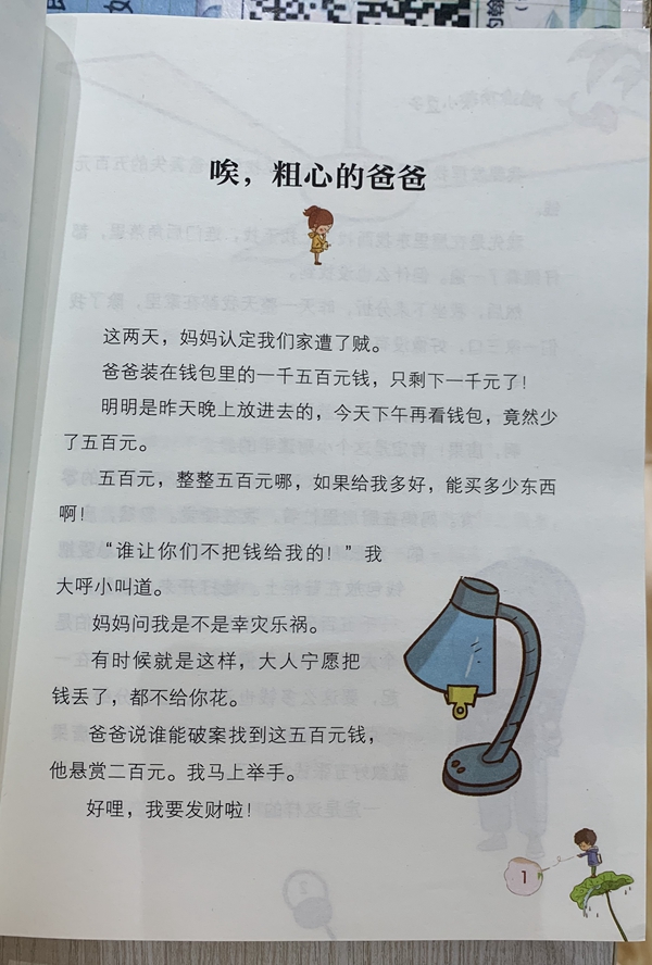 印刷。本书是一个短篇故事合集,写的是主人公小豆子和她的家人、同学之间发生的一些趣事,读来让人忍俊不禁。主人公小豆子是一位小学生,她性格调皮活泼、粗心马虎,爱玩儿、爱漫画、爱幻想。虽然生活中有各种不开心的事,如考试没考好、被禁止看电视、不让吃零食等,但她总能用自己的方法一一化解,她不但自己始终保持着开心乐观的生活态度,还感染了周围的人。本书语言生动幽默,富于生活化,把小豆子活泼可爱的天性表现得很好。本书篇目有《唉,粗心老爸》《稀奇古怪的发明》《大人太狡猾》等。