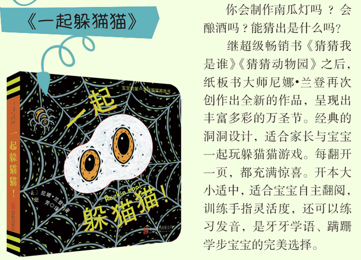 01形式上具有普遍性,几乎没有一个宝宝不喜欢玩躲猫猫、不会玩躲猫猫,全世界的宝宝和父母间都会玩这个游戏,所以父母和宝宝很容易接受,拿到书马上就会玩。