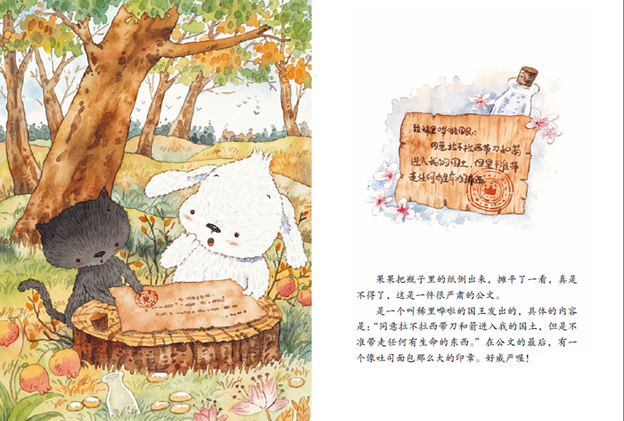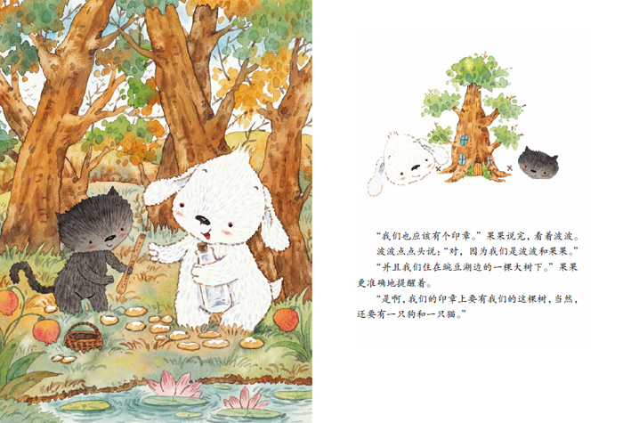 《包子狗和面条猫 7 魔法印章》:面条猫果果和包子狗波波从捡到的漂流瓶中看到一封公文,他们觉得公文上如吐司面包一样大的印章一定很重要,于是就开始做自己的印章了。因为印章天生的庄严,波波和果果用它调节了矛盾、维护了头发森林的安全。