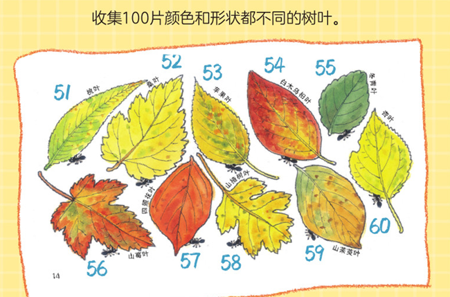 自然教育·生命教育·美感教育,收集100张秋天的树叶吧!秋天来到了树林给叶子染上了花花绿绿的颜色。100只蚂蚁决定齐心协力,收集100片颜色和形状都不同的树叶。充满好奇的淘气鬼小蚂蚁,总是搬来一些毫不相干的东西。100只蚂蚁能集齐100片树叶,顺利地举行令人兴奋的秋日宴会吗?跟着《100只蚂蚁,100片树叶》感受自然之美,迈出有趣地学习数学的第一步吧!