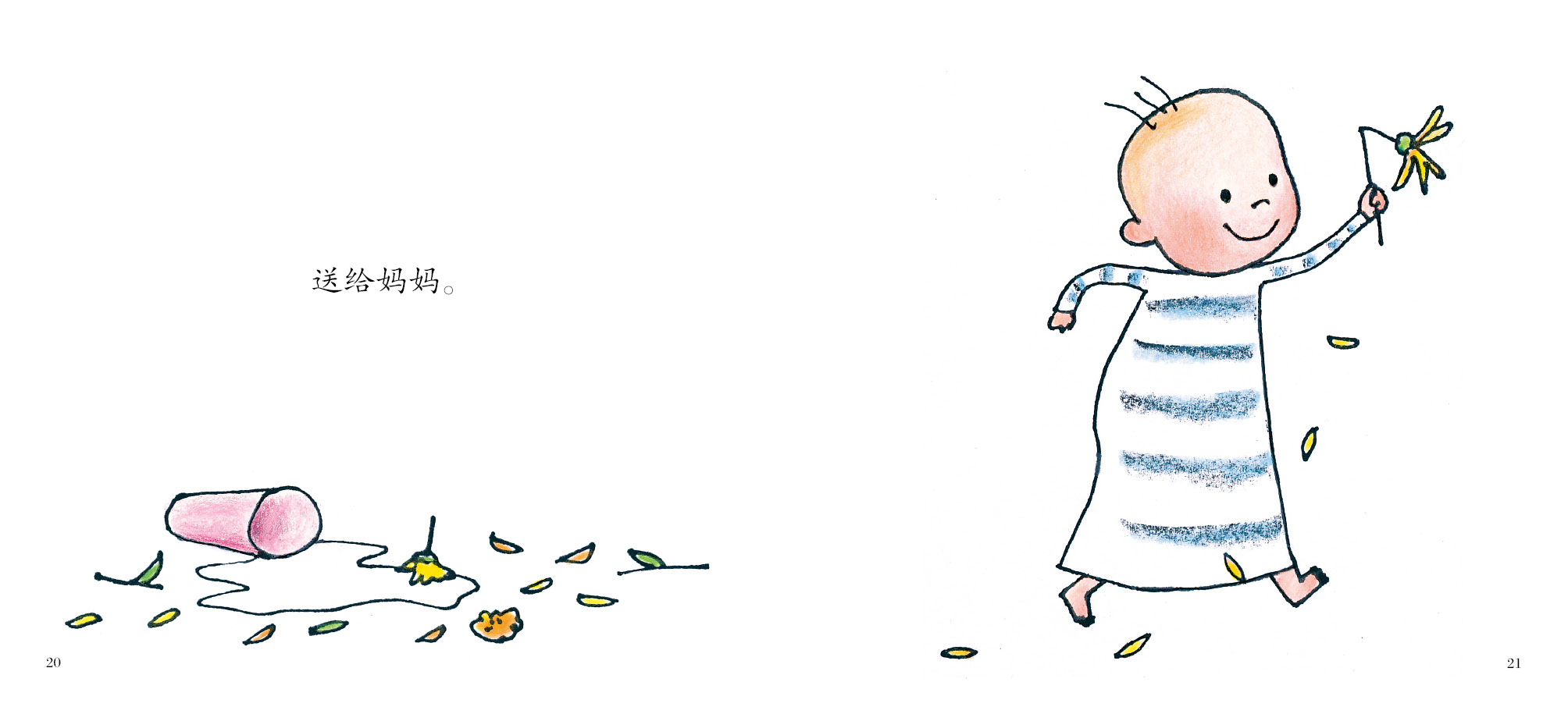 文字简洁、朴实无华,但画面表现力非常强,擅于用宝宝面部表情和肢体语言来描述一个婴儿清晰的情感曲线。