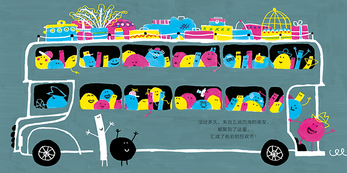 在全球化的影响下,现代社会的组成越来越多元。我们更应该让孩子学习去理解和尊重每个人的不同,并体会多元融合产生的创造力。就像在书中,来自世界各地的朋友,让一个原本只有黑与白的世界,变得更缤纷多彩!