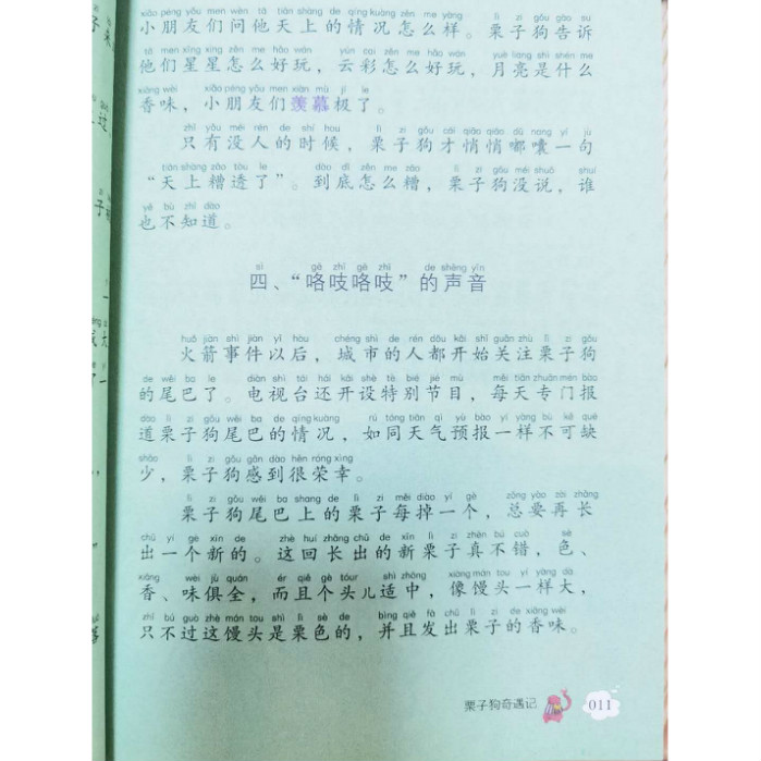 《栗子狗奇遇记/注音版儿童文学名家精选书系》收录了葛冰老师创作的四个童话故事,《栗子狗奇遇记》《*后一支曲子》《小狐狸的新式汽车》以及《调色盘市长和绿毛驴》。其中《栗子狗奇遇记》讲述了一只尾巴上长着栗子的小狗的有趣故事,他的栗子不仅能发出香味,还能变换各种形状,时大时小,一会儿变出一座房子,一会儿又变成一个照相机。这样神奇的栗子虽然给栗子狗带来了一点点烦恼,但带来多的是欢乐和便捷。栗子狗和他的朋友都很喜欢这长在尾巴上的栗子。