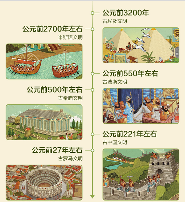 本书通过翻翻页的有趣形式依次向小读者介绍了古埃及文明、古欧洲文明、古罗马文明、古波斯文明、古中国文明、美洲文明等六大文明,涉及各个古代文明具有代表性的历史遗迹、人物事件、风土人情、宗教信仰和神话传说,以及古代世界七大奇迹、考古发掘技术的革新、现存的古代地标建筑等。本书为小读者揭开古代文明的神秘面纱,带领他们畅游其中开阔眼界、增长知识,启发他们感受人类文明的来之不易和古代文明的独特魅力,为日后树立正确的历史观、世界观奠定基础。
