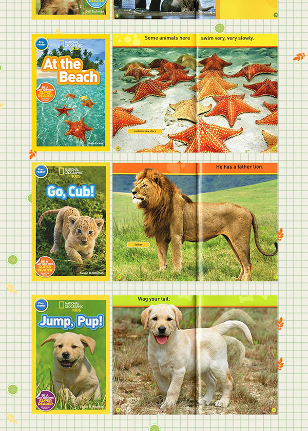 在这里,小读者可以看到世界上不同的企鹅、美丽的海边奇景及各种海洋动物!除此之外,你还能跟随小水獭,一起探索充满乐趣的可爱水獭世界!最后你还能走进蛇的世界,了解这些迷人的生物。 你知道树袋熊和小蜜蜂有什么特点吗?令人毛骨悚然的毛虫究竟如何变成美丽的蝴蝶?小读者都能在这里找到答案!同时,我们还将开启动物探索旅程,探秘雪鸮、小狮子和雨林动物的生活。 你家的小猫咪和小狗狗是怎么度过一天的呢?你或许能在书中找到答案哦!不仅如此,你还能了解爱睡觉的小熊、喜欢在树林间闲逛的小猴子、各种奔跑的小马,还能和小兔子蹦蹦跳跳地在森林里探索呢!