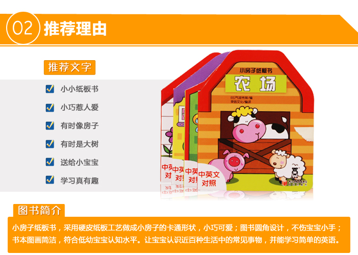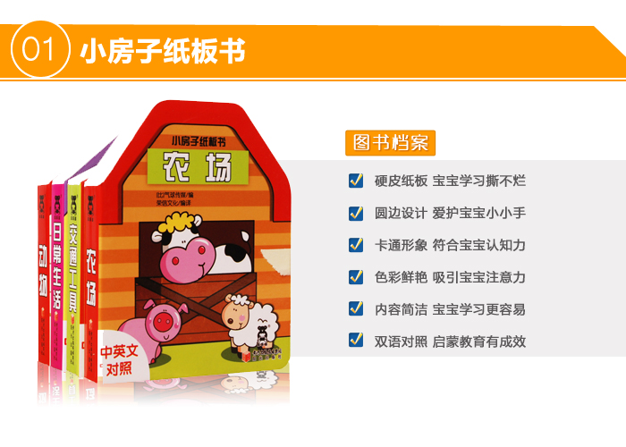 2.宝宝喜欢:幼儿不会用手指翻书,而是用小手掰书,厚厚的纸板书让宝宝在“掰书”的快感中迈出聪明第一步!