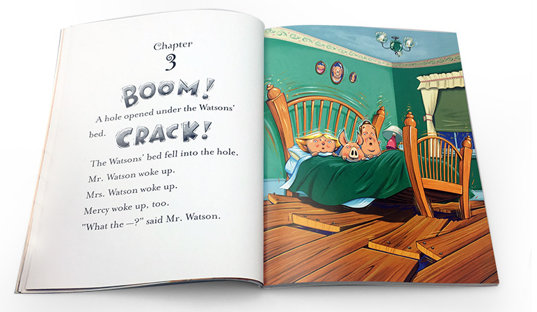 Mercy loves nothing more than a ride in the convertible, with the wind tickling her ears and the sun on her snout. But one day the Watsons’ elderly neighbor Baby Lincoln pops up in the backseat in hopes of some “folly and adventure” — and in the chaos that ensues, an exuberant Mercy ends up behind the wheel!