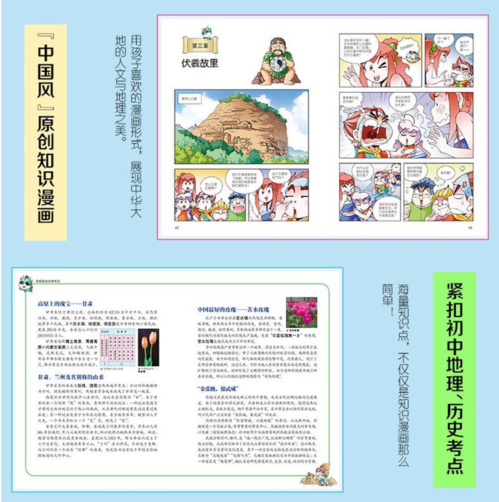 本书为二十一世纪出版社倾心打造的中国原创动漫品牌图书,采用漫画形式进行创作,以惊险刺激的寻宝故事为线索,介绍甘肃丰富多样的地理风貌、历史遗迹、文化艺术、物产资源等,让小读者体验“足尖上的中国”。《甘肃寻宝记》画面精致,行文活泼,亲和而有感染力,此书作为小读者认识甘肃、了解甘肃的入门书籍,也是极佳的。