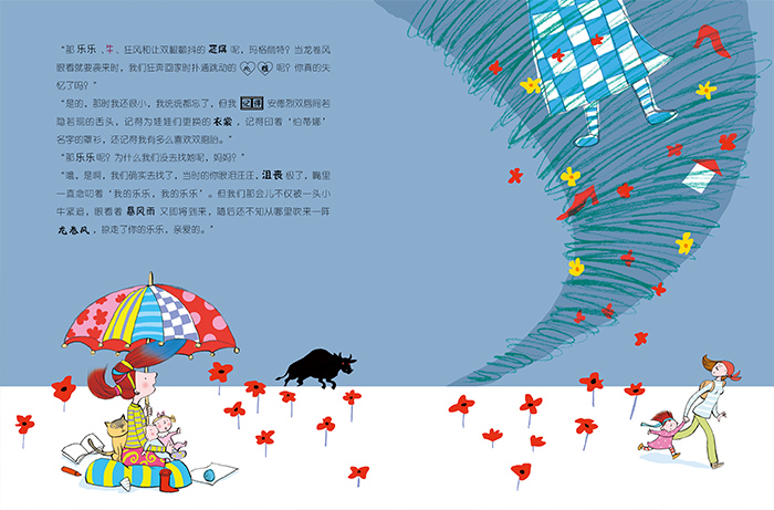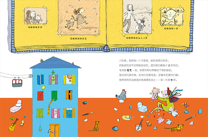 作者:“在意大利语中有两个动词:rammentare 和ricordare,都有记得、回想和回忆之意,其中rammentare 来源于mente,是大脑和思想之意,而ricordare 这个词则来源于cuore,意为心。或许妈妈知道女儿在心中一直记挂着乐乐,希望她找回心中的记忆。但玛格丽特像所有孩子一样,出于本能相信烙在心里的回忆会一直存在,因此她继续和其他的洋娃娃玩耍。这并不是背叛之举,而是向世界敞开心扉。总之,只是一点点蓝色的想念, 一点点而已,并不太多。”