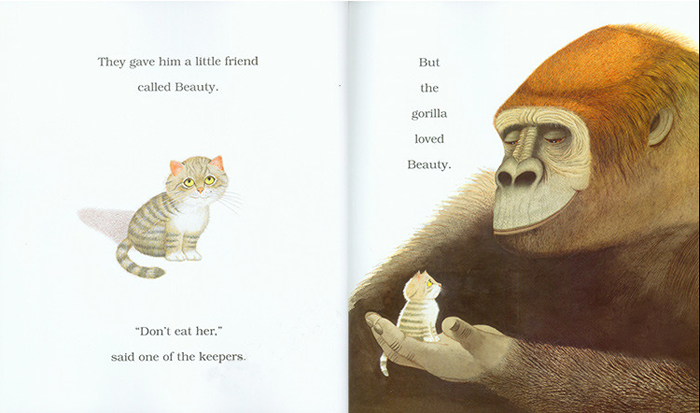 这是一个关于的大猩猩与小萌物的暖心故事。故事讲述的是一只会手语的大猩猩,他要什么有什么,但是有一天,他向他的饲养员们做出手语表达他想要有一个朋友。照顾他的饲养员找来了一只名叫 Beauty 的小猫,很快地,小猫和大猩猩就成了密不可分的好朋友。可是有一次大猩猩因为生气发泄怨气而弄坏了电视机,他的饲养员会不会认为如此娇小,手无寸铁的小猫和猩猩当朋友太危险了呢?幸好 Beauty 是只机智的小猫,立刻就想出方法,证明他们特别的友谊。