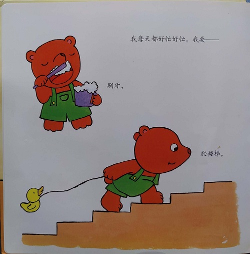小小熊每天都好忙好忙。他要刷牙、爬楼梯、穿衣服、吃饭……