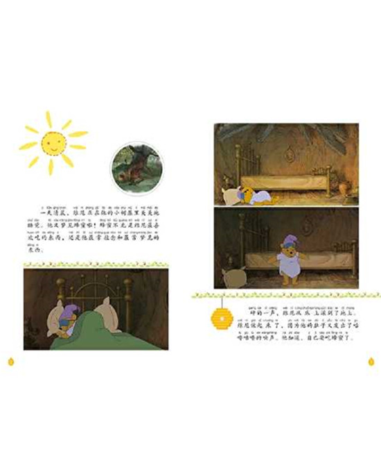 这是一本图画故事书,加注拼音。讲述了屹耳把自己的尾巴弄丢了,罗宾提议谁先帮屹耳找到尾巴的代替品,谁将赢得一罐新鲜蜂蜜的故事。可大家找到的尾巴没有一条能使屹耳高兴起来。第二天,维尼去找罗宾帮忙,发现罗宾留下一张便条,识字有限的大伙儿以为罗宾被绑架了,便惊恐地组织起营救罗宾的行动,然而此时的维尼已经快要忍受不了阵阵袭来的饥饿感了……