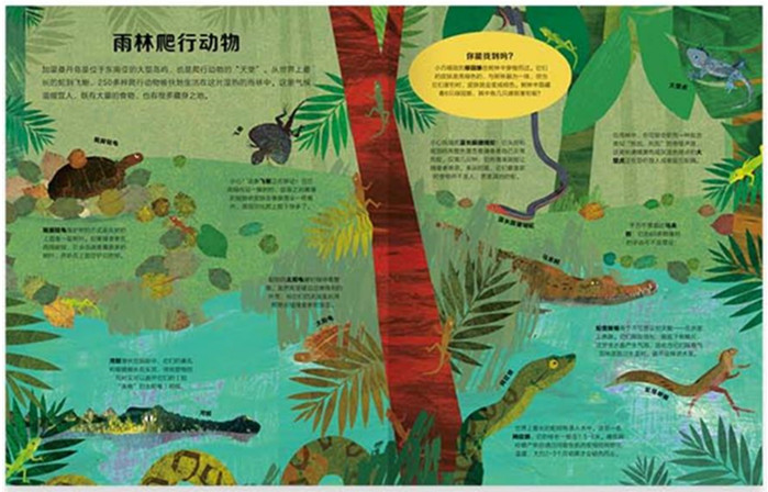 无论在森林、大海、沼泽还是我们身边的公园,爬行动物无处不在。它们周身萦绕着神秘的光彩,让孩子无法停下探索的步伐。 快跟随国际大奖插画家布丽塔•泰肯特鲁普的引领,在爬行动物生存的不同环境中尽情遨游。这本书不仅能引导孩子们进行科学的探索,让他们学到许多有关爬行动物的知识,还能通过艺术与写实相结合的优质插图,培养孩子对美的感知能力,体验艺术与自然的完美结合。