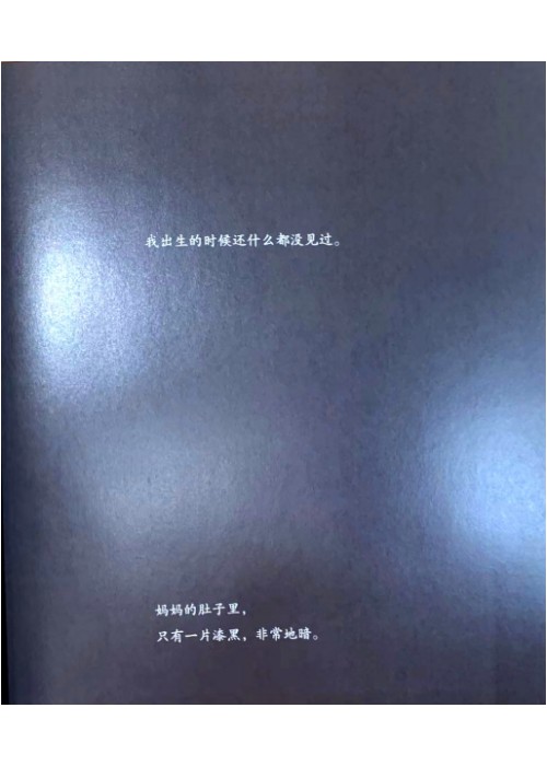 我出生的时候还什么都没见过 妈妈的肚子里, 只有一片漆黑,非常地暗。