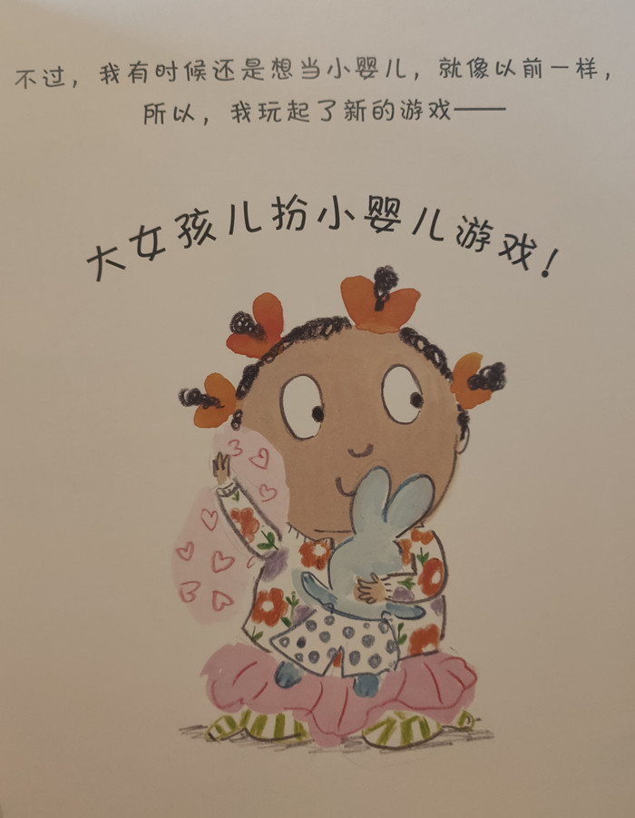 对于拥有两个孩子的家庭来说,如何让孩子们学会相处、懂得“亲情”的意义,让习惯了独宠的孩子接受大人的二孩计划并接纳新的家庭成员,是非常重要的课题。这本书讲述了一个小姐姐面对小婴儿的到来,有时也想做回婴儿,但在一系列有趣的探索后,她发现自己更愿意做个大女孩儿,由此渐渐学会“分享”,懂得“相处”,理解“亲情”的真谛。