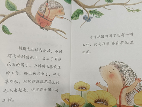 刺猬先生远行以后,小刺猬代替刺猬先生,当上了奇迹花园的园丁。小刺猬很喜欢这份工作。给大树捉虫子,听小草唱歌,把爬到玫瑰花蕊上的毛毛虫赶走,这些都是园丁的工作。