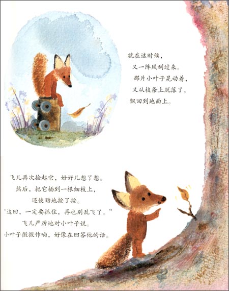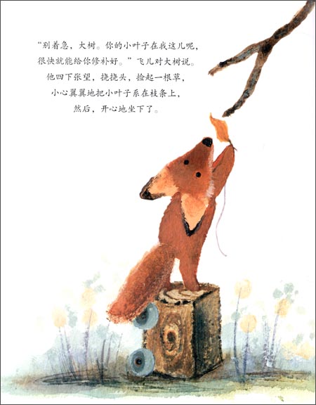 秋天里,飞儿一天比一天更担心他心爱的大树, 它的树枝越来越枯黄,连叶子也开始脱落了。 无论飞儿多么努力,小叶子们还是一片片地走了。 难过的飞儿带着仅剩的一片小叶子回了家。 直到寒冷的清晨,他发现大树居然偷偷地换上了新衣……