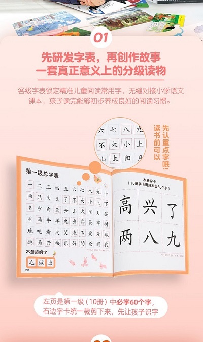 《小羊上山儿童汉语分级读物》是汉语分级读物领军人孙蓓老师联合靠前一线教育专家、成熟绘本作者和插画师为4~7岁处于识字、阅读敏感期的孩子匠心编写的中国原创汉语分级读物书系。本系列依据新版小学语文课程标准,先用高频核心汉字设定各级字表,后创作全新图画故事,以帮助孩子零基础学会独立阅读,轻松度过幼小衔接关键期。丛书根据孩子的阅读字量范围分为14个级别,其中前8级为学龄前儿童阅读字量,后6级为小学1-3年级儿童阅读字量。全套丛书拥有完整、完善的线上、线下辅助学习体系,每一级均提供配套的阅读指导课、阅读精读课和音频课,以及家长指导手册等,用科学的方法全面引领孩子走向阅读的殿堂。对应的《小羊上山儿童汉语分级读物 级》,故事生动丰富且寓教于乐,涵盖原创故事、经典童话、科普和生活类故事,语言文字优美,富有韵律,插画细腻有质感,使孩子在快乐的阅读中潜移默化地学会适合他年龄的汉字,帮助孩子收获自信心和成...……