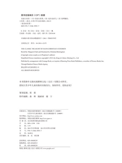 欢迎进入神奇的童话世界,这里正在讲述夜莺和小美人鱼的故事。这一精美的版本是由著名插画家克里斯蒂安?伯明翰创作的,这些插画给安徒生最受读者喜爱的八个故事赋予了新的生命,包括《拇指姑娘》《夜莺》《坚定的锡兵》《海的女儿》《卖火柴的小女孩》《皇帝的新装》《丑小鸭》及《豌豆上的公主》。快跟随这八个故事探寻安徒生世界中的浪漫、幽默和神奇吧!这些经典的童话故事被以抒情散文和全彩工艺重新诠释,就连最小的读者也会爱不释手。无论孩子或是成人,都会被这唯美的版本深深吸引。