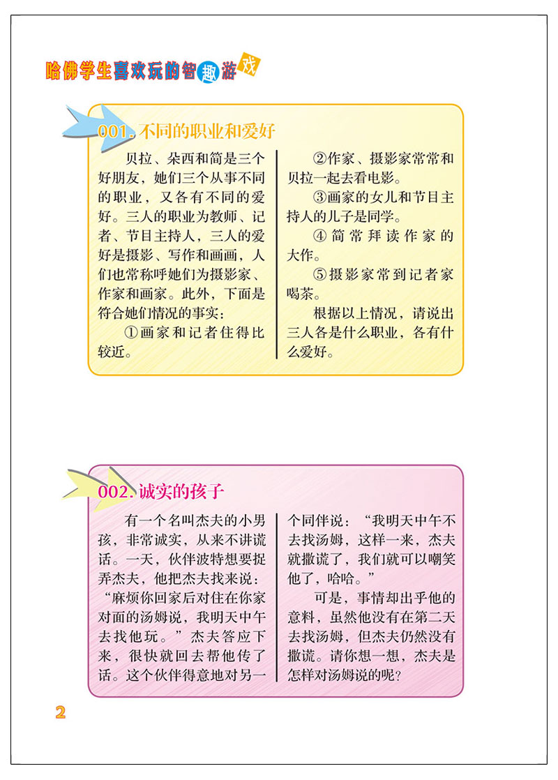 《逻辑推理》是《哈佛学生喜欢玩的智趣游戏》的第二部,包括“五彩生活”、“缤纷校园”、“警官判案”、“妙趣科学”、”数学推理“五个部分,它旨在通过展示一个又一个精彩的生活片段,使同学们了解生活,观察生活,以科学的态度解决问题。