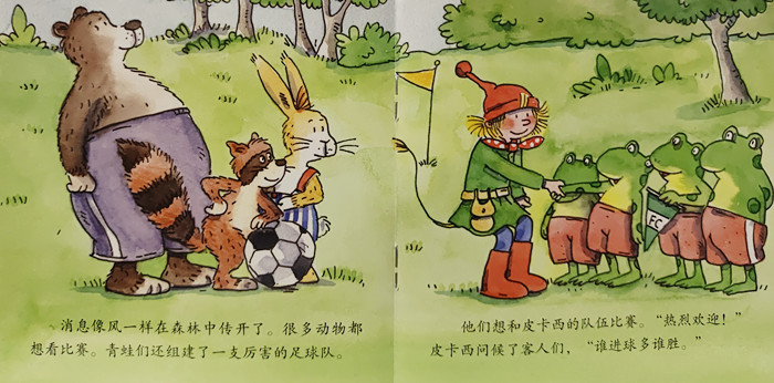 “嘿,看我又找到了什么!”浑身湿漉漉的浣熊瑞奇边说边跑进皮卡西的小屋,他兴奋地给皮卡西看一个脏兮兮的泥团。皮卡西从他的蛋糕面团中抬起头问:“你在哪里找到的?”瑞奇抖了抖湿漉漉的身体,答道:“那边河里。”