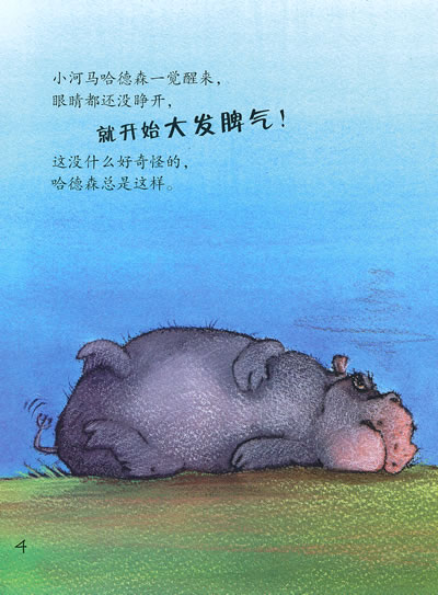 哈德森是一只脾气暴躁的小河马。一早起来,他就无缘无故地大发脾气,而且他还不断地攻击别人,希望每个人都染上他的坏脾气。哈德森最后如愿以偿了吗?