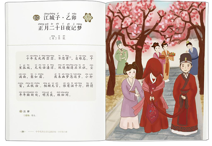 本书采用双色印刷,并选取极富诗意的诗篇绘制了彩色插图,让小读者在诗情画意中快乐诵读。