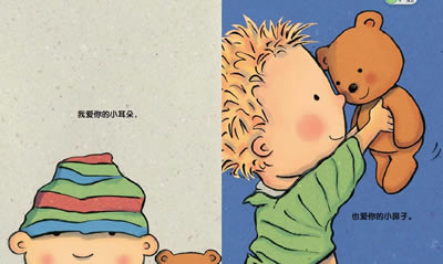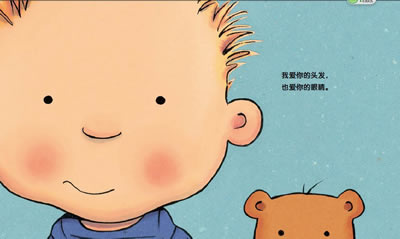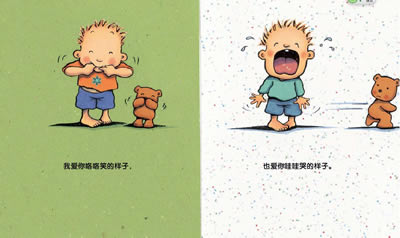 爱,是无条件的接纳。在《宝贝,就是这样爱你》中,书中的行文以一种分解的意向,用儿童特有的眼光,把家长对孩子的爱分解成:爱头发、爱脚丫、爱手指、爱脚趾、爱嘴巴、爱鼻子、爱宝宝生气的样子、爱宝宝哭的样子。书中主要提到了关于宝宝身体的词汇,让宝宝在甜美柔软的语句中,了解自己的身体,了解爱,感受爱。爸爸妈妈可以用那些动作、身体部位和各种各样神情和情绪配合的互动,让宝宝第一时间感受到满满的爱意。