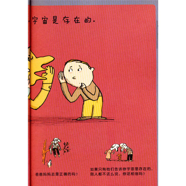 “儿童哲学智慧书”的另一大特色就是将严肃而深刻的思考消解在趣味十足的图画里。虽然是哲学启蒙书,但考虑到小读者的心理和兴趣特点,本套丛书特别采用了全彩绘本的形式,简约睿智的问题配以童趣十足的字体、诙谐风趣的图画,可谓意蕴深远,奇趣盎然。