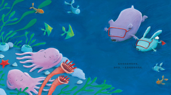 对生命中最重要的人,你会怎样表达你的爱呢?在你做的每一件事里?还是藏在你说的每一句话里?抑或是你不经意流露出的每一个眼神里?这本作品处处充溢着爱的气氛和快乐的童趣,小熊和小兔子亲切可爱的形象、夸张的儿童化语言对孩子有着极大的吸引力。将抽象的、难以形容的爱用他们所看得见、能理解的方式表达出来,让人别有一番惊喜和感动。鼓励孩子勇敢地、真诚地向身边的亲人、朋友表达自己爱。