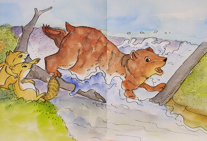 好奇是孩子的天性,受认知的水平和能力的限制,他们对周围的世界充满了好奇,他们总想知道这是什么、那是什么之类的问题。本书中的两只小松鼠也不例外,它们表面看似在瞧热闹,但主要还是因为好奇,从一只小小的蚂蚁过一根独木桥开始,独木桥也开始承受着越来越重的动物,到最后一只大熊来了,不幸的是大熊掉到河里,小松鼠心中也有疑惑,为什么小蚂蚁、小兔子、大公鸡、狐狸它们过河就没事,而大熊就会从桥上掉下去呢?小朋友,你知道这是为什么吗?