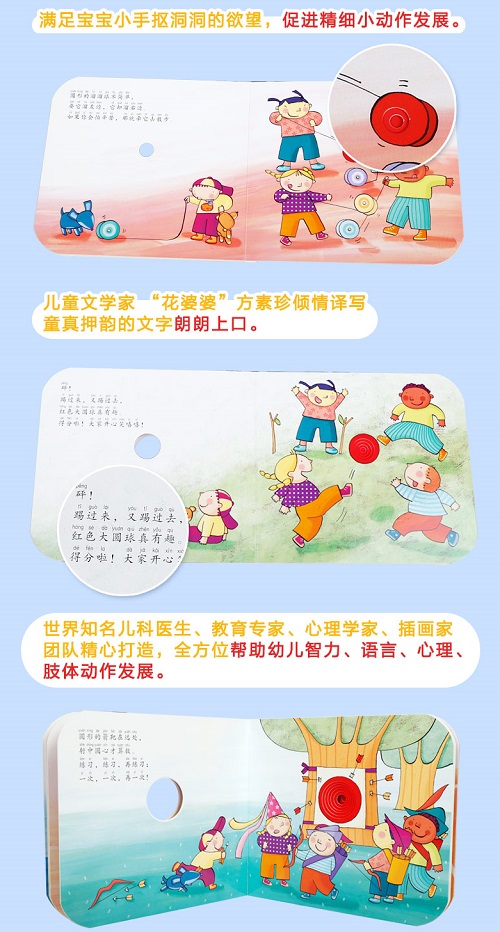满足宝宝小手抠洞洞的欲望,促进精细小动作发展。