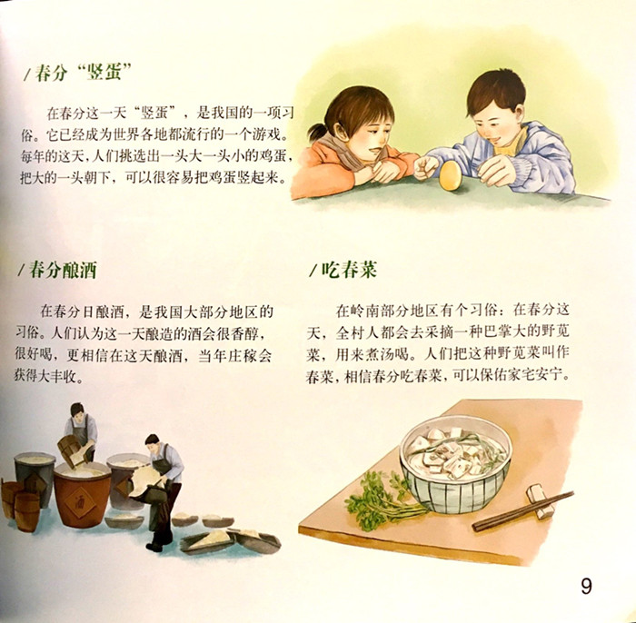 这本书集节气由来、天文气候、动物植物、七十二候、农事安排、民俗节气、故事传说、古诗谚语为一体,告诉小朋友关于二十四节气的