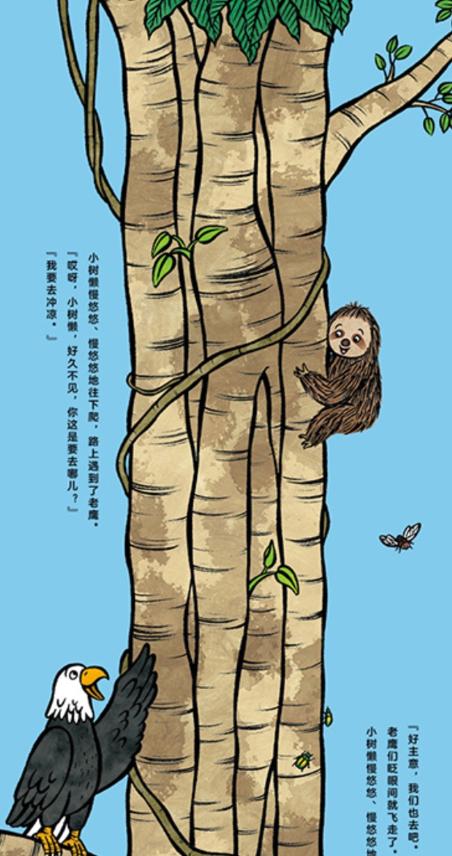 *纵向翻页 大拉页设计,视觉效果更佳,也更富有趣味性,完美体现了小树懒从高高的树上往下爬的过程。