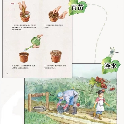 以姐弟俩在乡村外婆家的生活为主线,通过他们在菜 园的观察,认识了蔬菜、昆虫和其他植物,并知道了如何 灌溉、如何种植、怎样采摘蔬菜,了解了蔬菜的生长、成 熟和收获,知道了餐桌上的蔬菜是怎么来的。故事蕴含着 “顺应天时、道法自然、和谐共生”的哲理,通过蔬菜的 生长规律、成长周期告诉孩子,植物的生长是有规律的, 是与节气时令相符的。通过蔬菜的种植、采摘等,传递相 关的节气时令和农业科学知识。唯美的画面不仅展现出令 人神往的田园生活,还生动地描绘出孩子参与种植、动手 尝试的快乐场景,鼓励人们用自己的双手创造美好生活。
